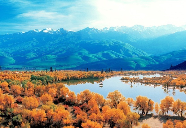 西域风光无限好,千里烟波入画中。